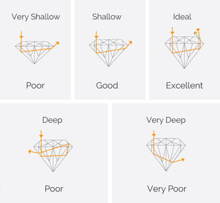 The illustration below shows several depths of a traditional round brilliant cut and how this affects the light moving through it. A well-cut diamond will have the maximum amount of light reflecting back to your eye.